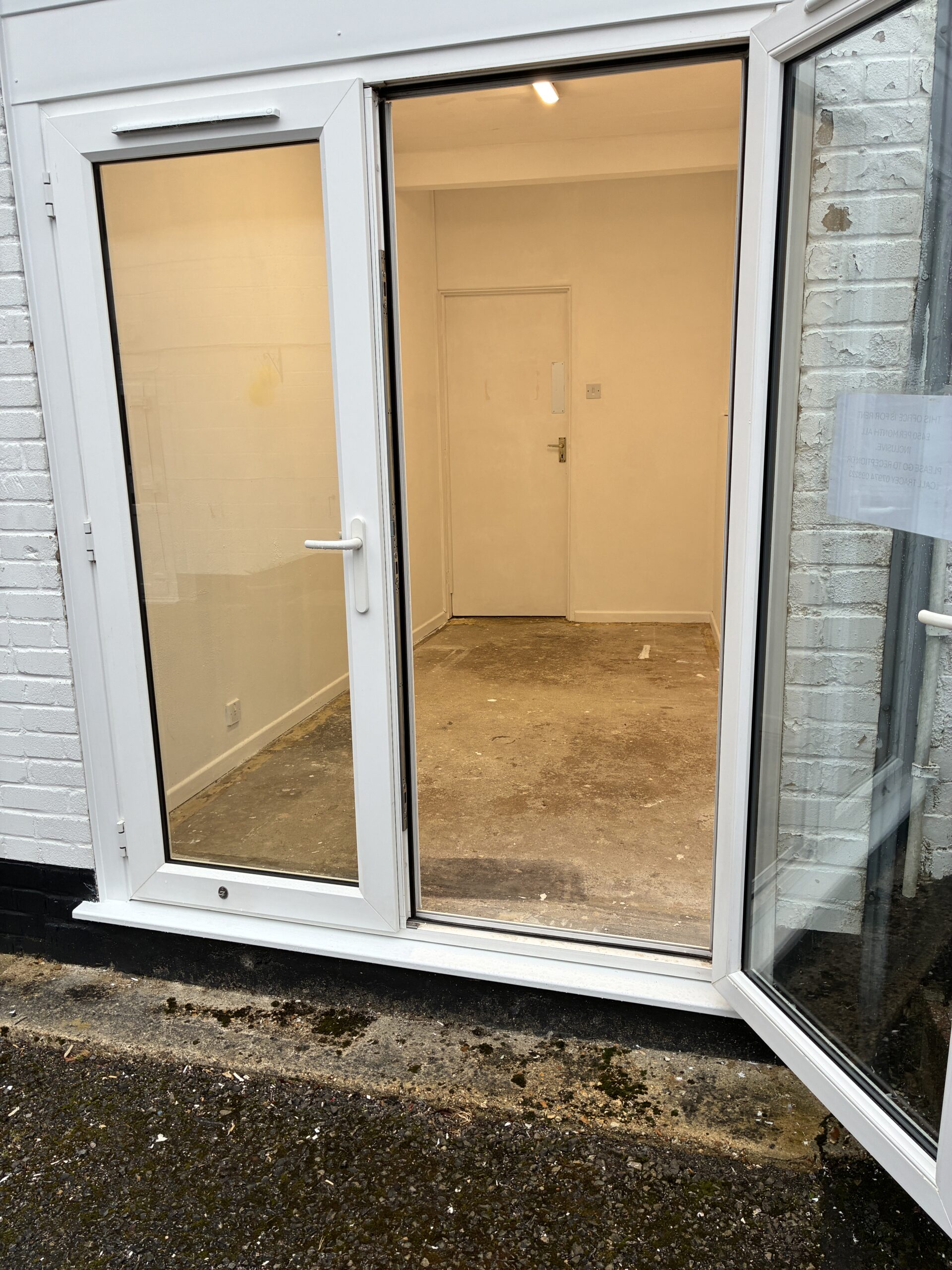 This little room has so many benefits. Double doors off the driveway. Very bright room. The door at the rear which leads to the communal kitchen and toilets